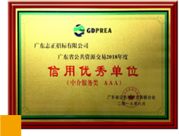 廣東省公共資源交易 2018 年度信用優秀單位(AAA 級)